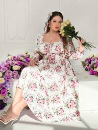 SHEIN Clasi Women Plus Size Heart Pattern Batwing Shoulder Loose Elegant Blouse One Shoulder Top, Suitable For New Year, Valentine's Day, Thanksgiving, Christmas, Easter, Party, New Year's Eve, Christmas Party, Christmas Decoration, Christmas Pajamas
