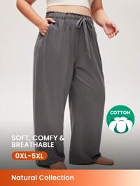 LUVLETTE Autumn And Winter Women's Plus-Size Dark Gray Soft 100% Pure Cotton Sleep Bottoms Lounge Pants Lingerie As Outerwear Airy Pajama Pants Fall Pajamas