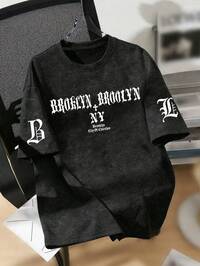 LittlTween Boy Letter & Number Allover Print Polo Collar Short Sleeve Shirt, Comfortable, Fashionable, Versatile, Soft, Suitable For Spring/Summer, Everyday Wear, Outdoor Play, School, Street Style, Party, And Leisure