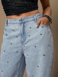 EnlivaPlus Size Women Straight Loose Casual Jeans, With Pocket Details, Street Style, Retro Design, High Waist, Slant Pockets, Straight Leg Jeans , Women Denim Pants, Summer Jeans. Elegant Women's , Valentine's Day , New Year Attire.