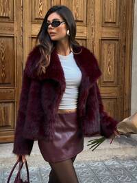 AloruhAloruh Women's Elegant Faux Fur Coat In Fall/Winter,New Year Clothes,Christmas Women's Clothing,Women's Winter Clothes,Women's Winter Coat,Winter Clothes For Women,Autumn Clothing For Women,Fall Outfits For Women,Autumn Clothes,Fall Clothes For Women,Casual,Business Commuting,Burgundy Coat,Ancora Red Faux Fur Coat,Wine Red Caot,Old Money Style,Simple Solid Color Coat