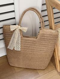 Lightweight, Portable Small Straw Bag Skinny Scarf Decor Drawstring Double Handle For For Teen Girls Women College Students Perfect For School, Outdoors, Travel, Outings, Handbag, Shoulder Bag Elementary School, Middle School, High School, Work, Business, Commute, Shopping, Holiday, Wicker Bag, Bow Purse For Women, Vacation Bag For Summer, Vacation Essentials, Perfectly Matching With Beach Accessories Women, Fashion Summer Vacation Bag, Beach Essentials Women Bags For Vacation & Holiday, Perfect For Summer, Vacation & Beach ,Vacation Essentials , Beach Bag